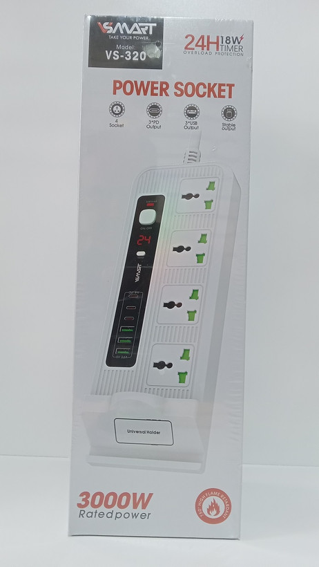 چندراهی هوشمند V-SMART مدل VS-320 یک راهکار همهکاره برای مدیریت برق و شارژ دستگاههای الکترونیکی است. این محصول دارای ۴ پریز برق یونیورسال، ۳ پورت خروجی PD (تایپ سی) و ۳ پورت خروجی USB است که امکان شارژ همزمان چندین دستگاه را فراهم میکند. ویژگی منحصربهفرد این مدل، وجود تایمر ۲۴ ساعته دیجیتال و سیستم محافظت در برابر نوسان برق (Overload Protection) است که امنیت دستگاههای شما را تضمین میکند. توان خروجی ۳۰۰۰ وات و بدنه مقاوم در برابر حرارت تا ۷۵۰ درجه سانتیگراد، از دیگر مشخصات فنی این کالای باکیفیت است.