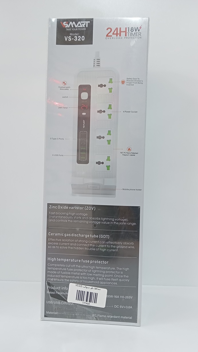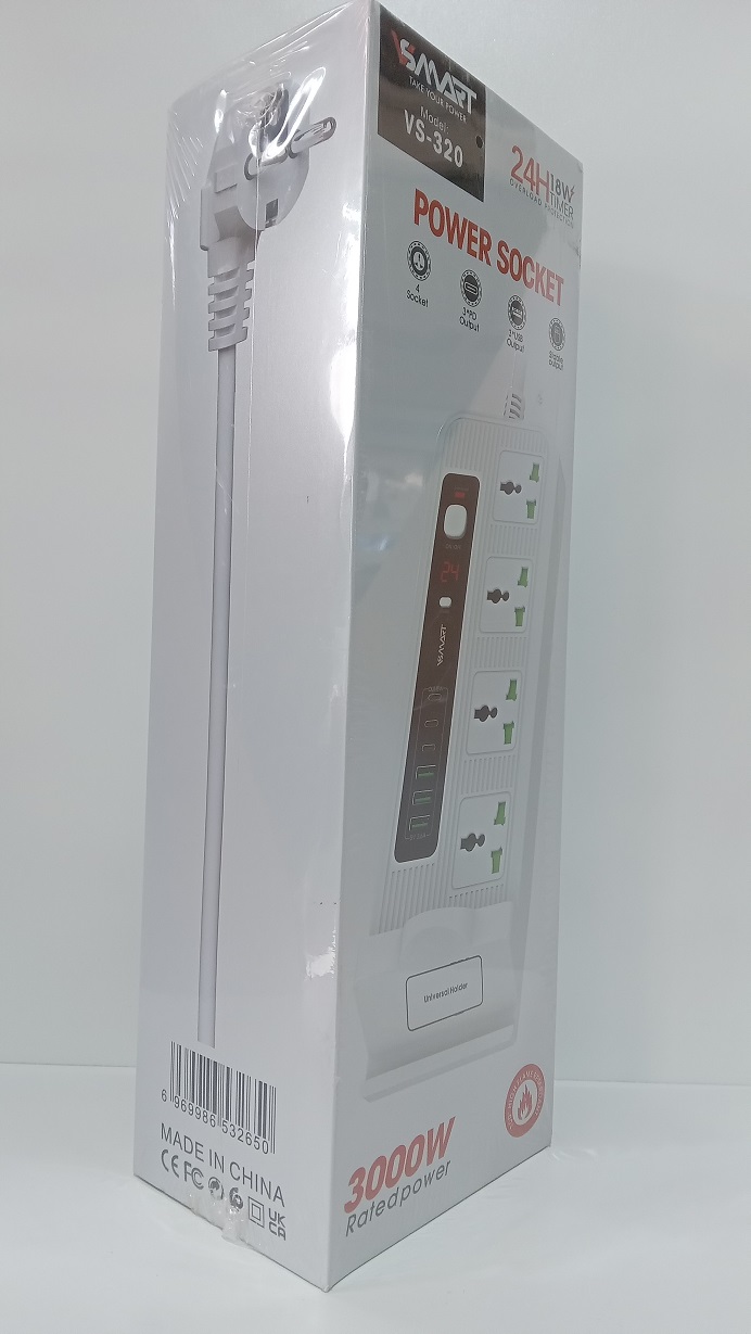 چندراهی هوشمند V-SMART مدل VS-320 یک راهکار همهکاره برای مدیریت برق و شارژ دستگاههای الکترونیکی است. این محصول دارای ۴ پریز برق یونیورسال، ۳ پورت خروجی PD (تایپ سی) و ۳ پورت خروجی USB است که امکان شارژ همزمان چندین دستگاه را فراهم میکند. ویژگی منحصربهفرد این مدل، وجود تایمر ۲۴ ساعته دیجیتال و سیستم محافظت در برابر نوسان برق (Overload Protection) است که امنیت دستگاههای شما را تضمین میکند. توان خروجی ۳۰۰۰ وات و بدنه مقاوم در برابر حرارت تا ۷۵۰ درجه سانتیگراد، از دیگر مشخصات فنی این کالای باکیفیت است.